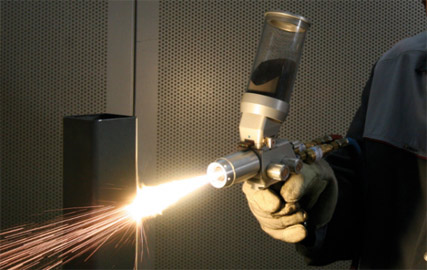 With all the features of the MiniSpray Jet plus increased durability and productivity, the UniSpray Jet is a combustion powder spray torch designed for hot and cold process thermal spray, using a variety of powders and substrates. The following fuel gases can be used: acetylene, propane, hydrogen in combination with oxygen, as well as compressed air used for cooling purposes.